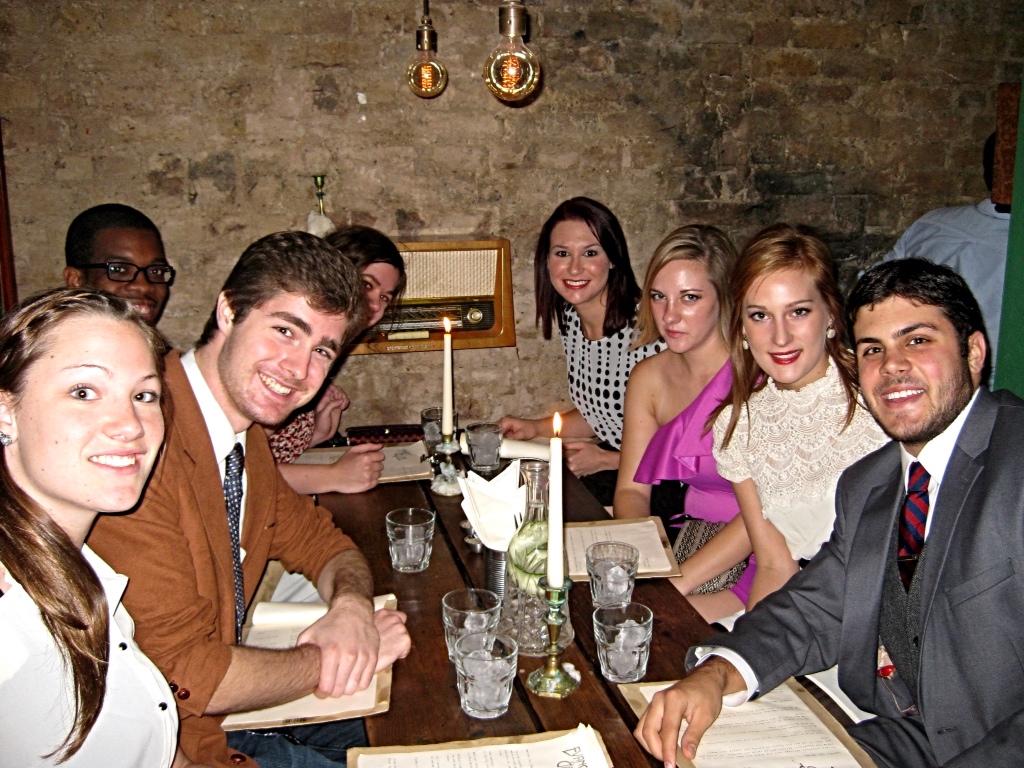 Inside, we found a dark, mysterious dining room, and were led to a table. The menus were wonderful, typewritten on old paper and attached to a filing envelope. The attention to detail was so impressive, and we were having a blast. We ordered some mysterious, old fashioned drinks and a few small appetizers recommended by our waitress, and then reveled in the atmosphere. We felt so classy and like members of a secret club. It was well worth the effort and price.